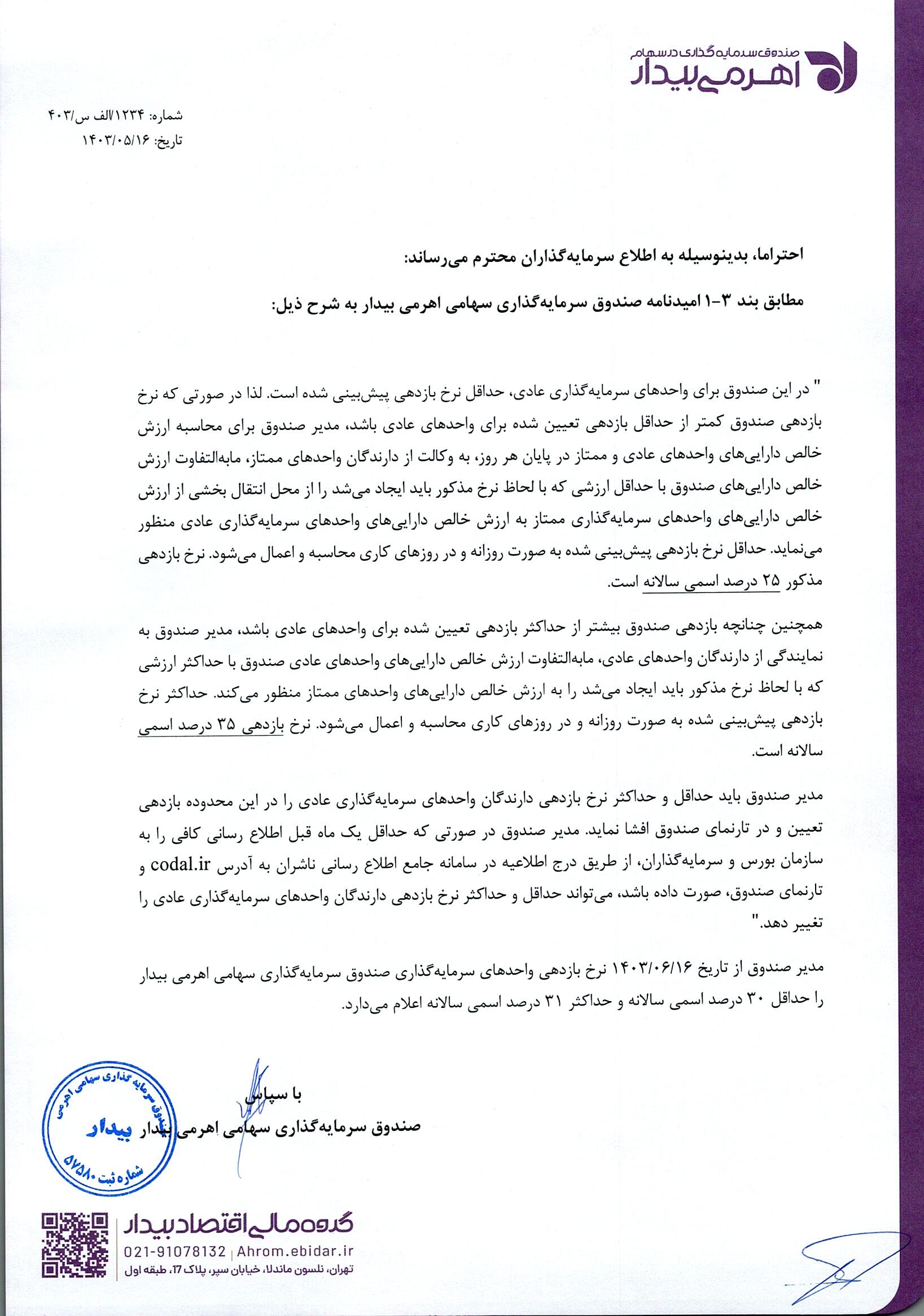 آگهي دعوت به مجمع صندوق سرمايه گذاري سهامي اهرمي بيدار مورخ 1403.06.18